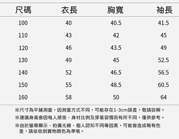 100cm、110cm、120cm、130cm、140cm、150cm、160cm