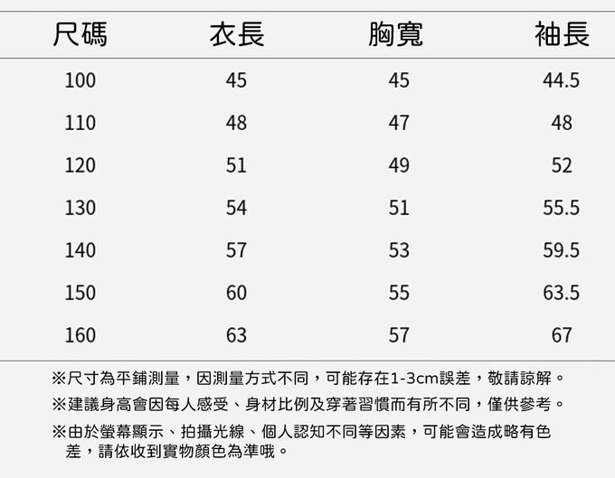 100cm、110cm、120cm、130cm、140cm、150cm、160cm