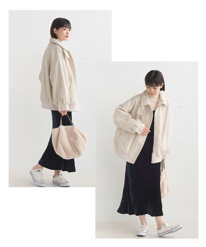 日本 OMNES - 翻領休閒柔軟毛圈感保暖外套-百搭黑