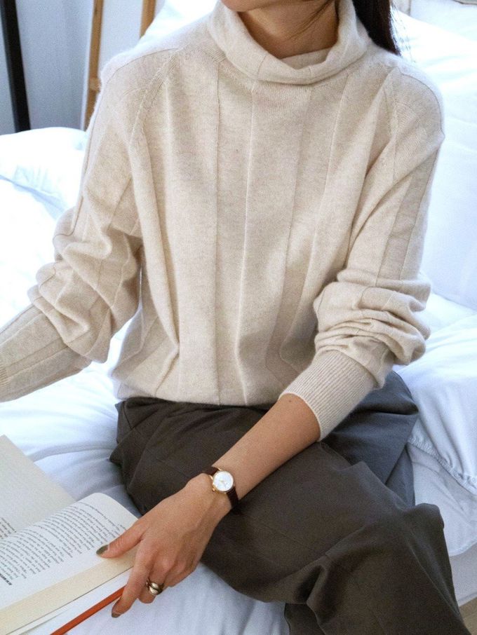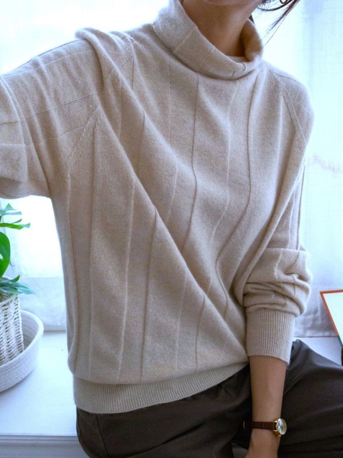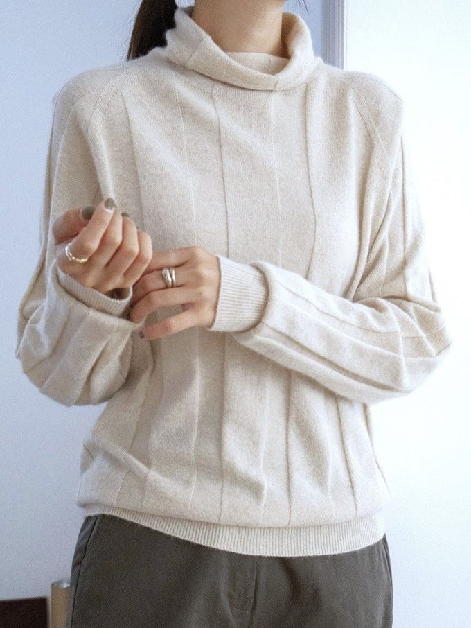 • 品名:輕暖美麗諾羊毛坑條針織長袖高領上衣