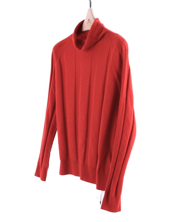 韓國女裝連線 - 輕暖美麗諾羊毛坑條針織長袖高領上衣-橘紅 (FREE)