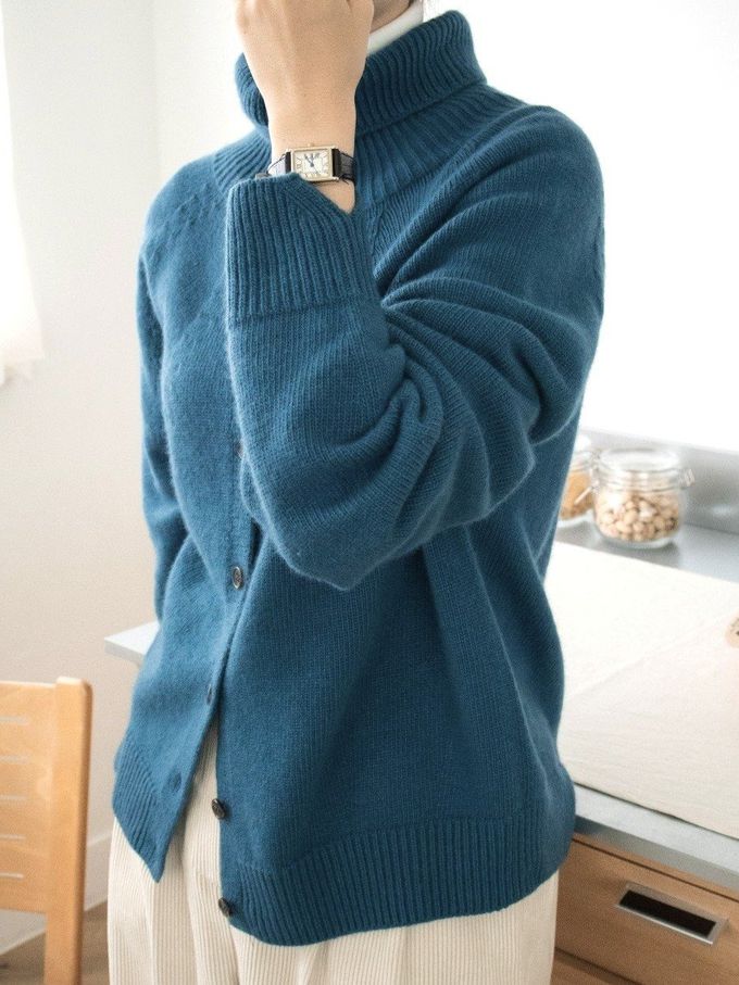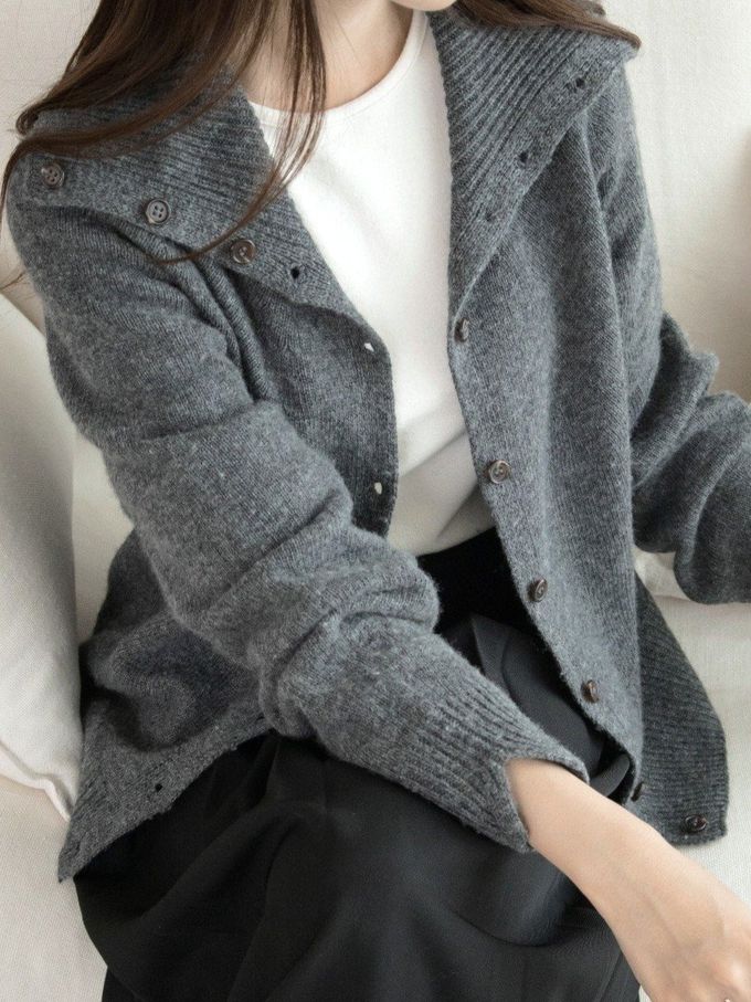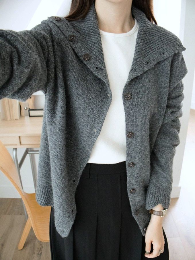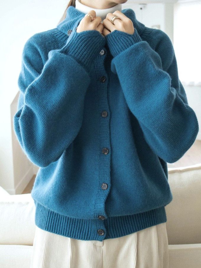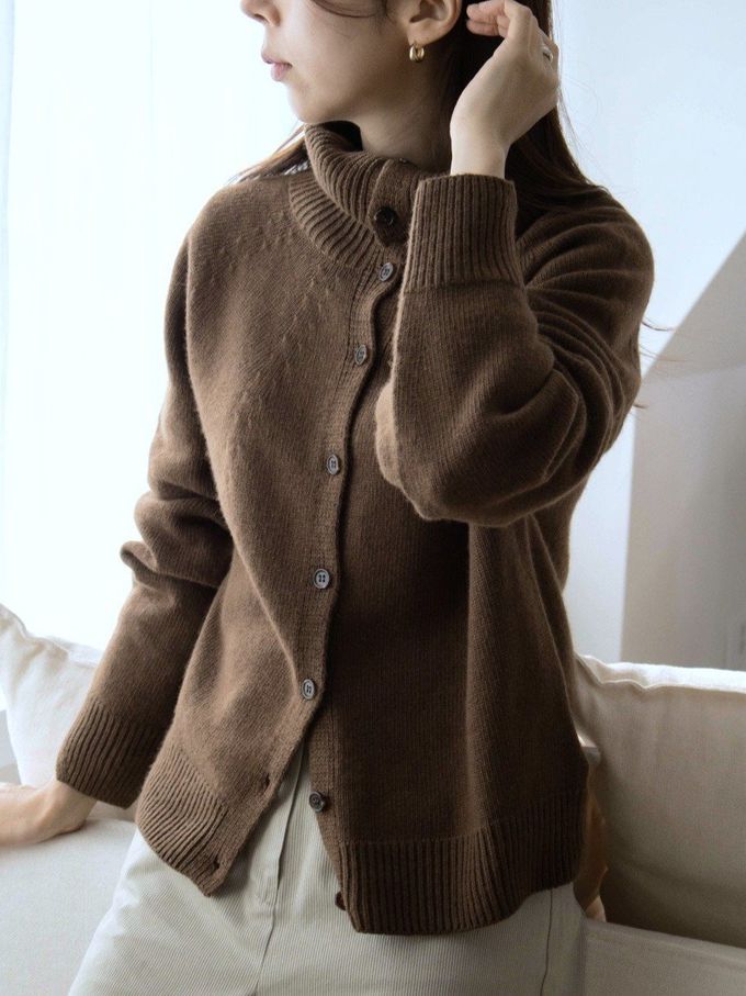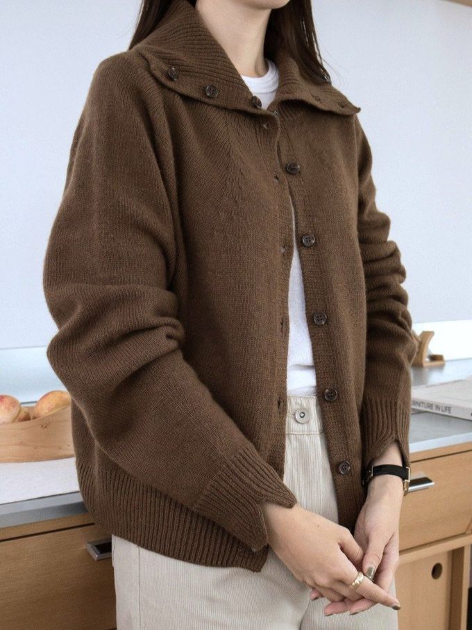 • 品名:細緻喀什米爾羊毛排釦翻領針織外套