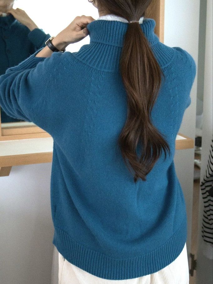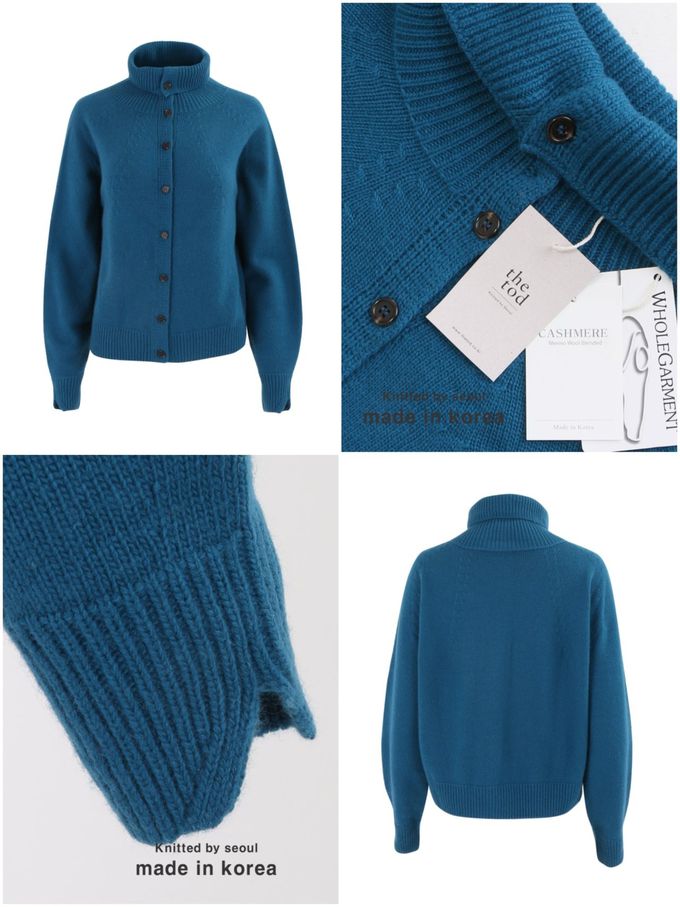 韓國女裝連線 - 細緻喀什米爾羊毛排釦翻領針織外套-藍綠 (FREE)