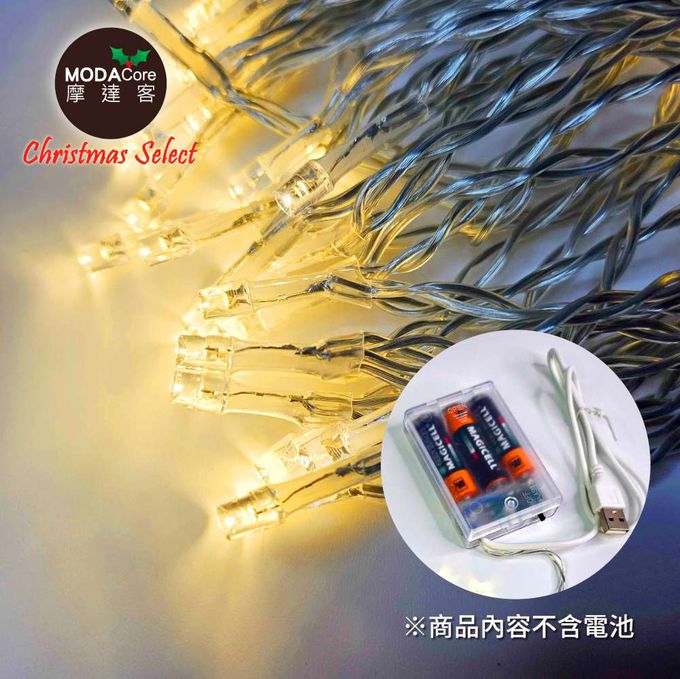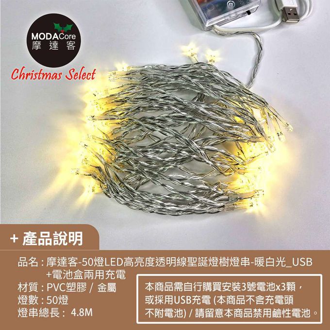 品名:50燈LED燈串暖白光_USB+電池盒兩用充電-聖誕燈樹燈露營燈