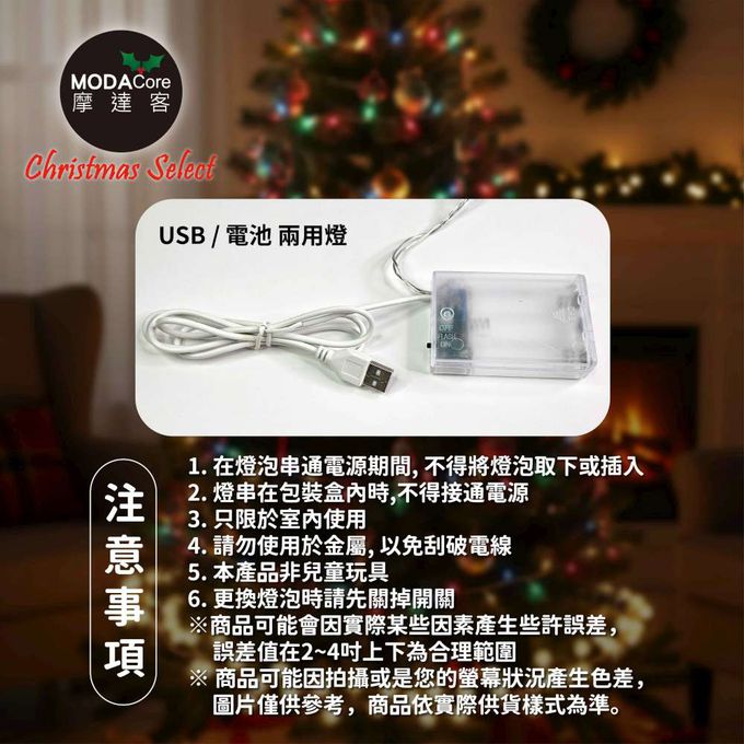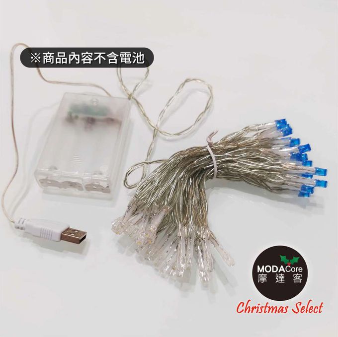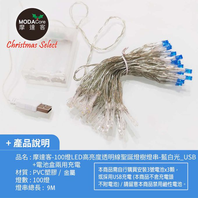 品名:100燈LED燈串藍白光_USB+電池盒兩用充電-聖誕燈樹燈露營燈