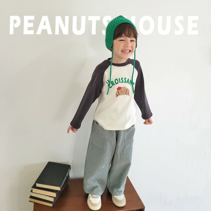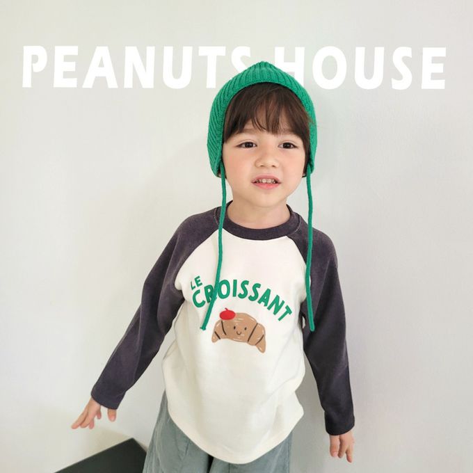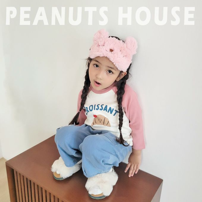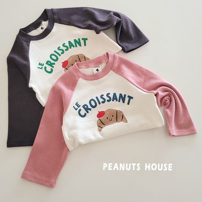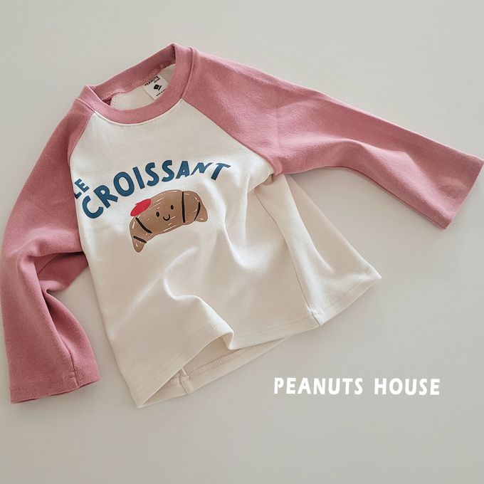 韓國南大門童裝 - Peanuts House 美味可頌長袖上衣-霧粉