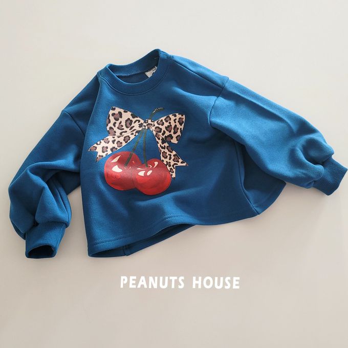 韓國南大門童裝 - Peanuts House (內磨毛)豹紋櫻桃長袖上衣-藍