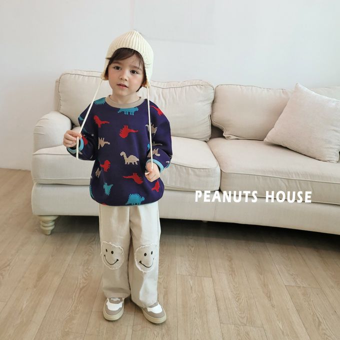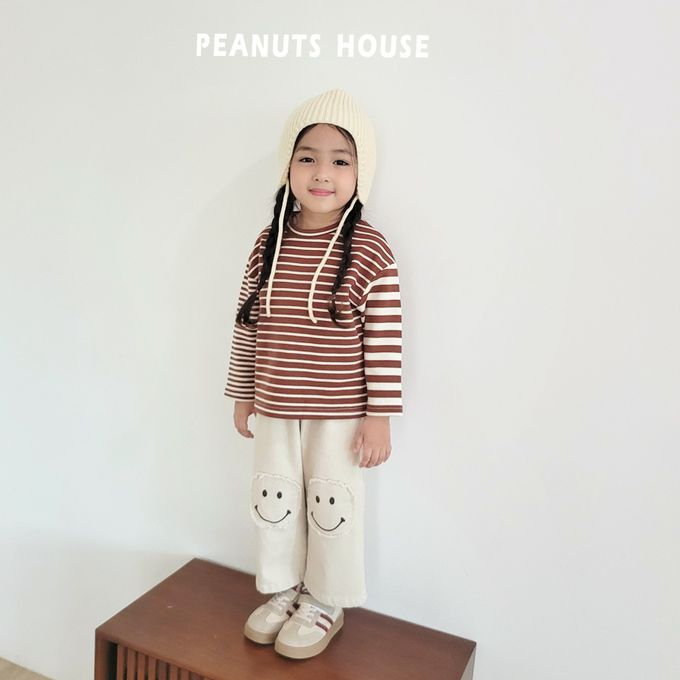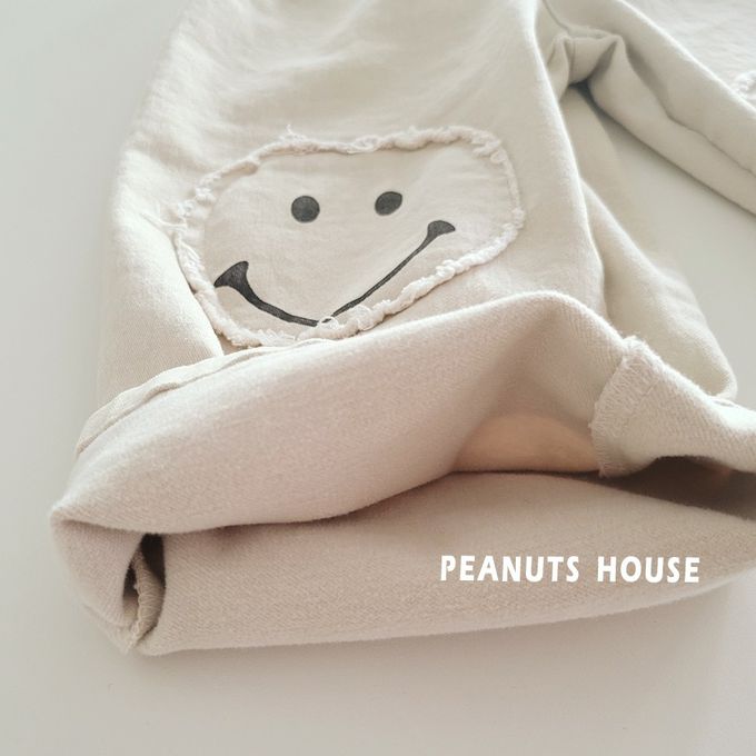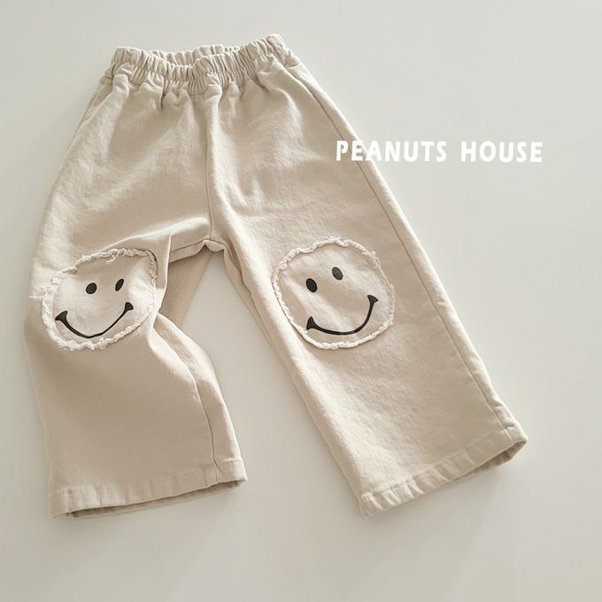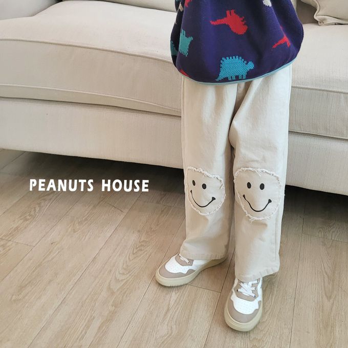 韓國南大門童裝 - Peanuts House 鬆緊腰笑臉拼貼休閒長褲-米