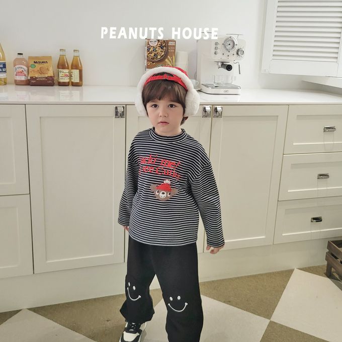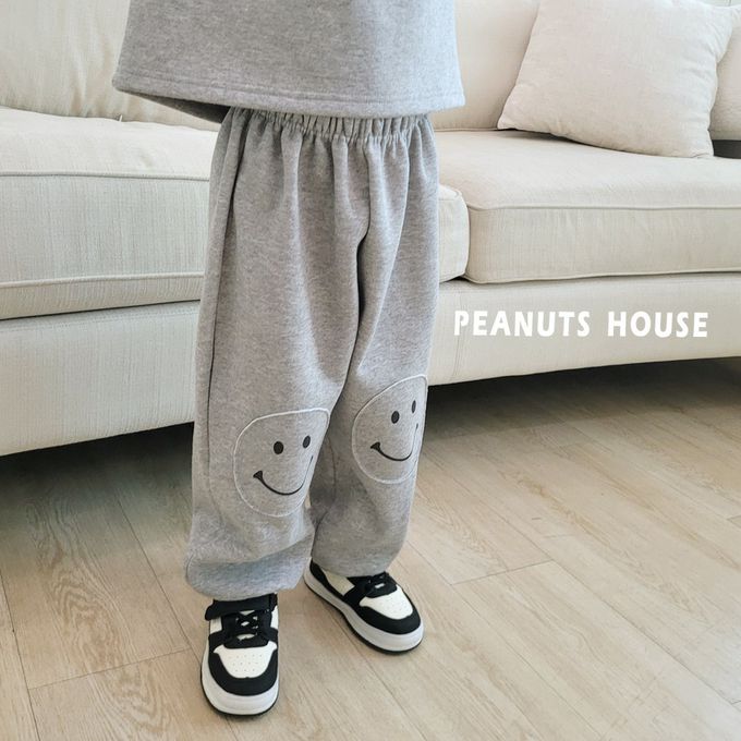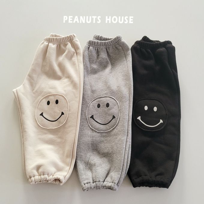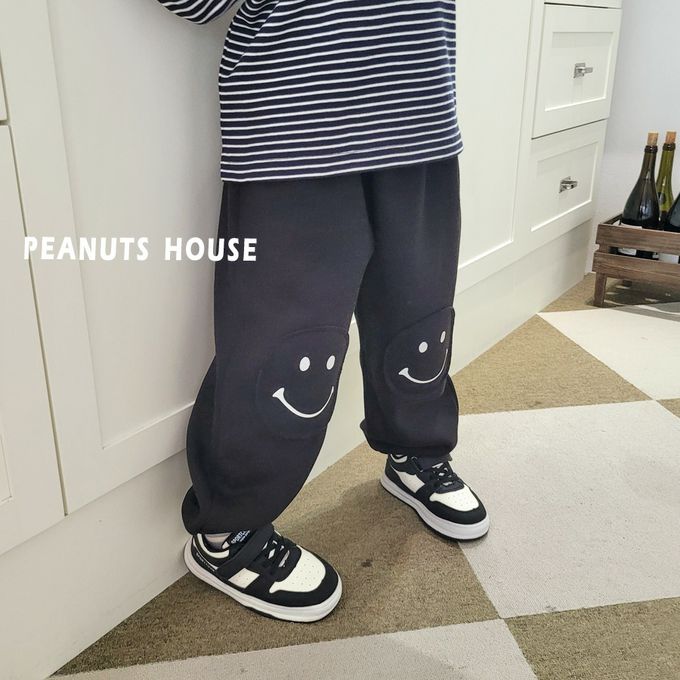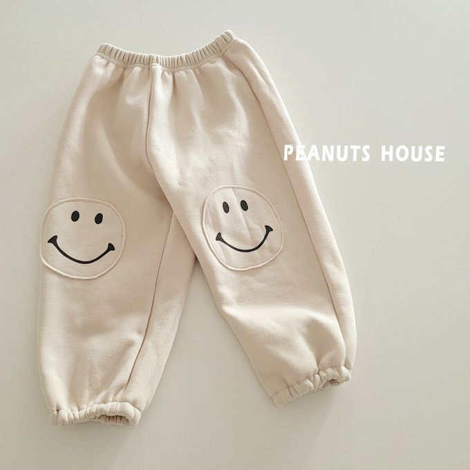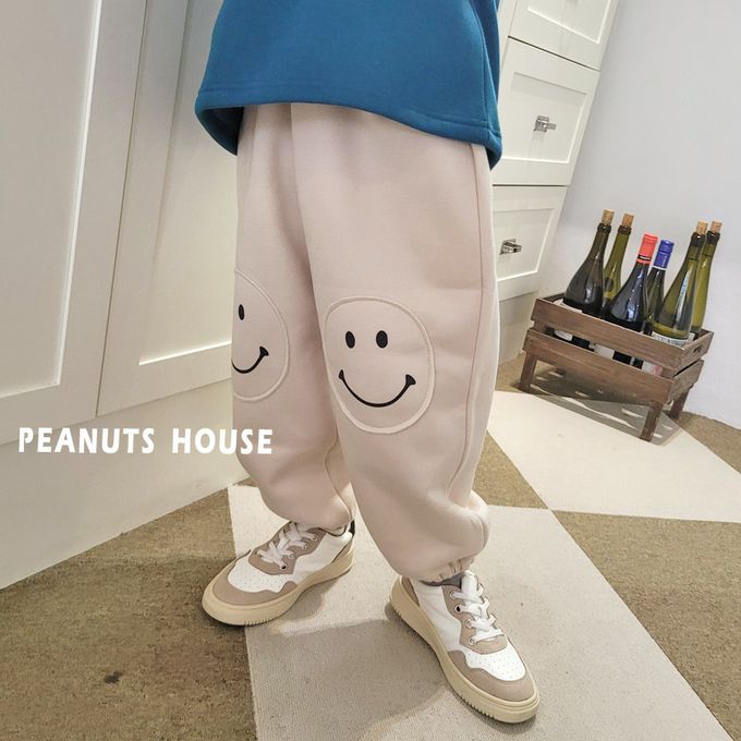 韓國南大門童裝 - Peanuts House (內磨毛)鬆緊腰笑臉拼貼縮口長褲-米