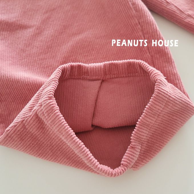 韓國南大門童裝 - Peanuts House 鬆緊腰單口袋燈芯絨抓褶長褲-桃粉