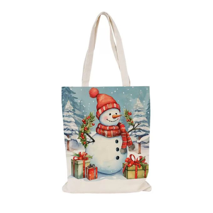 聖誕節精美印刷帆布提袋配拉鍊收納袋-2件組-雪人及薑餅屋款-袋裝