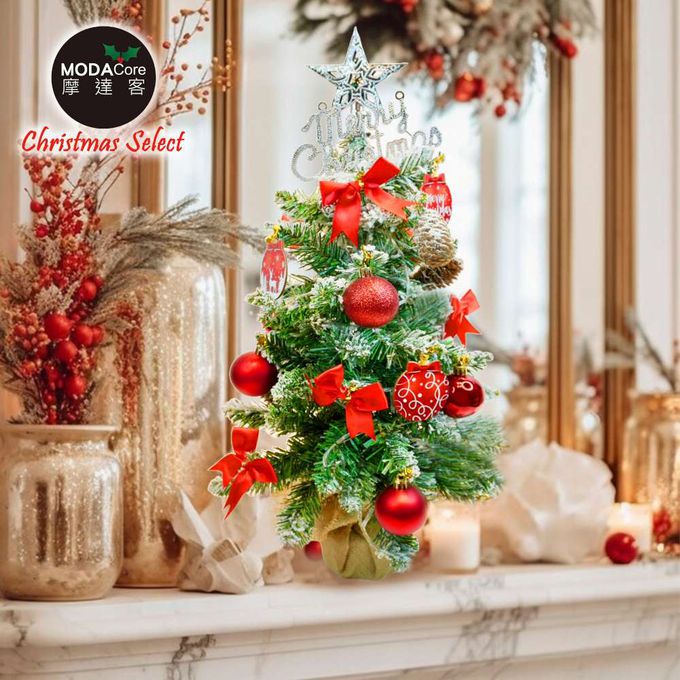 60cm(2尺)高級PVC植雪麻布圓底座聖誕樹+驚艷木質彩繪紅金銀系配件/不含燈/本島免運費/歐美外銷人氣款