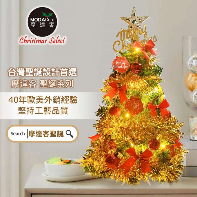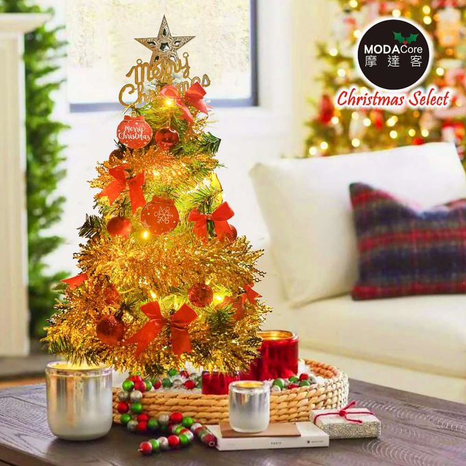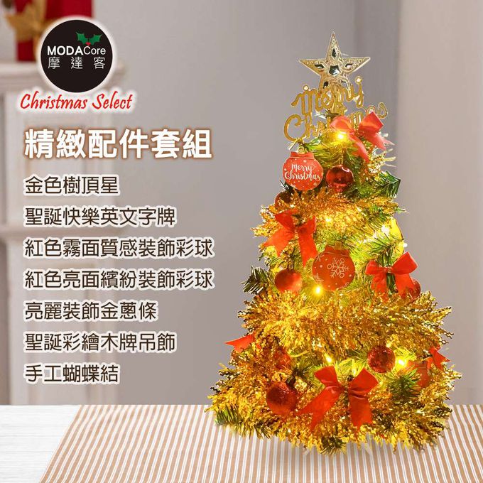 台灣製2尺(60cm)精緻裝飾綠色聖誕樹+豐盛木質彩繪紅球金彩系飾品組+50燈LED燈串暖白光-USB電池盒兩用充電/本島免運費/歐美外銷款