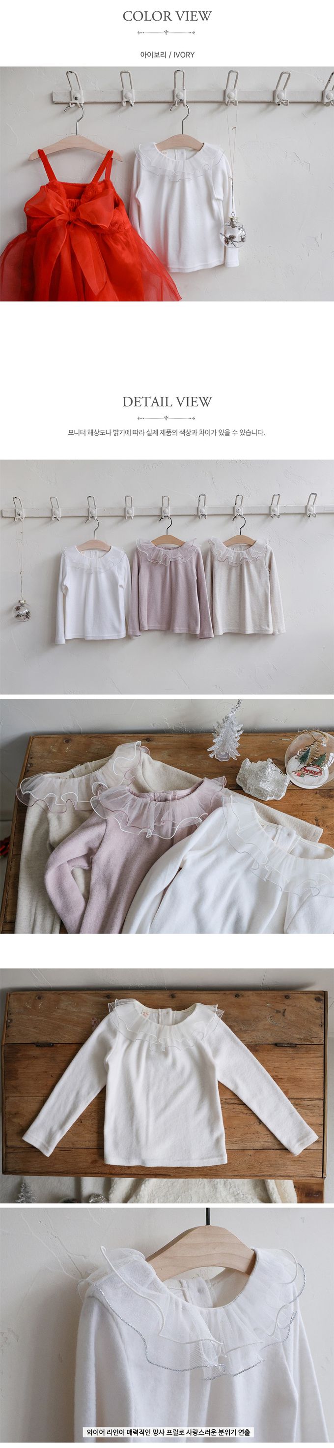 韓國南大門童裝 - Puellaflo 雙層網紗荷葉領裝飾長袖上衣-白