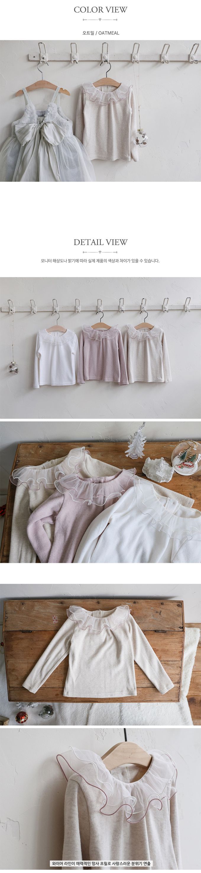 韓國南大門童裝 - Puellaflo 雙層網紗荷葉領裝飾長袖上衣-燕麥