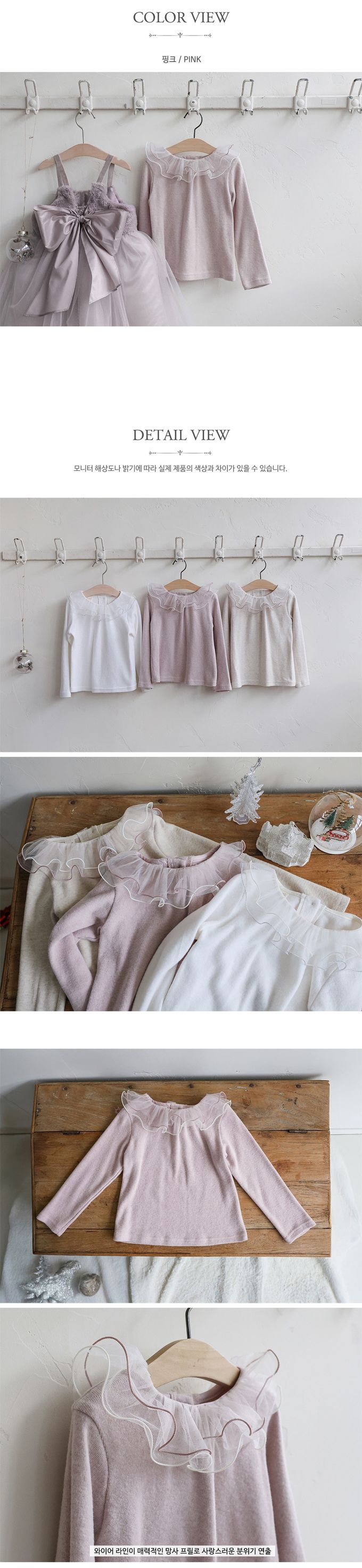 韓國南大門童裝 - Puellaflo 雙層網紗荷葉領裝飾長袖上衣-藕粉