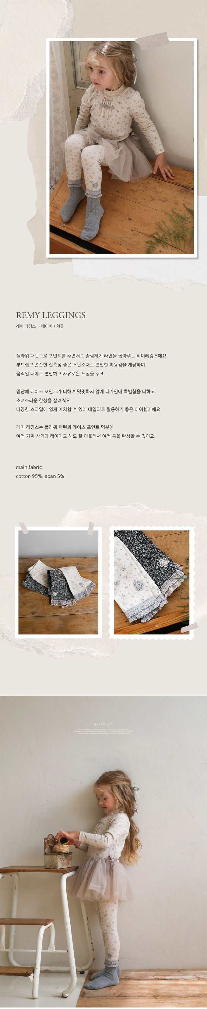 韓國南大門童裝 - Puellaflo 鬆緊腰繡花點綴彈力花漾內搭褲-米