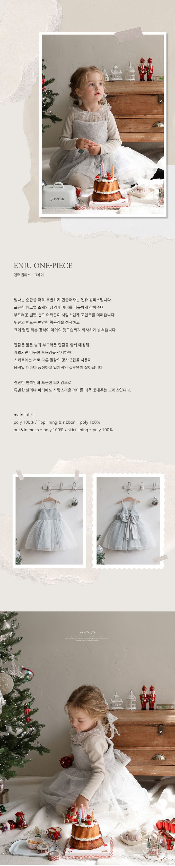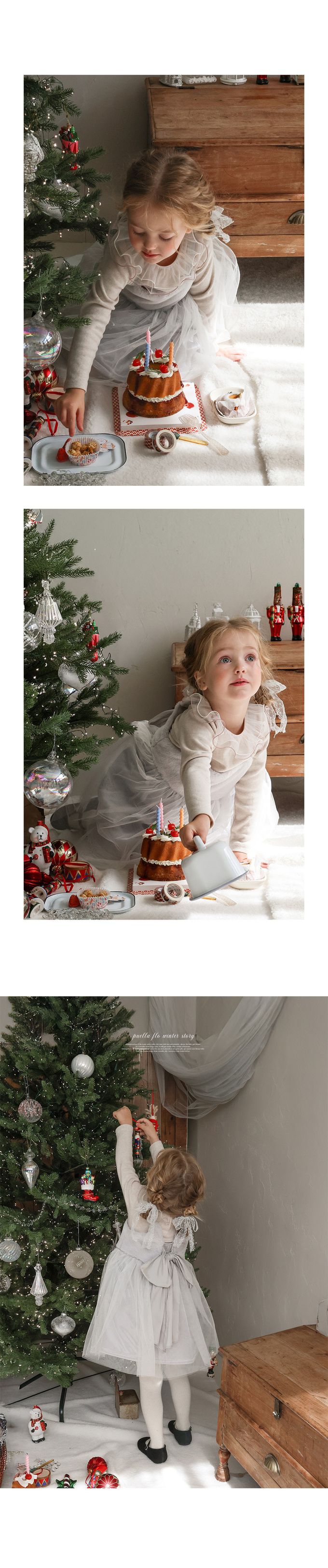 韓國南大門童裝 - Puellaflo 大蝴蝶結細肩絨毛網紗蓬蓬禮服洋裝-淺灰