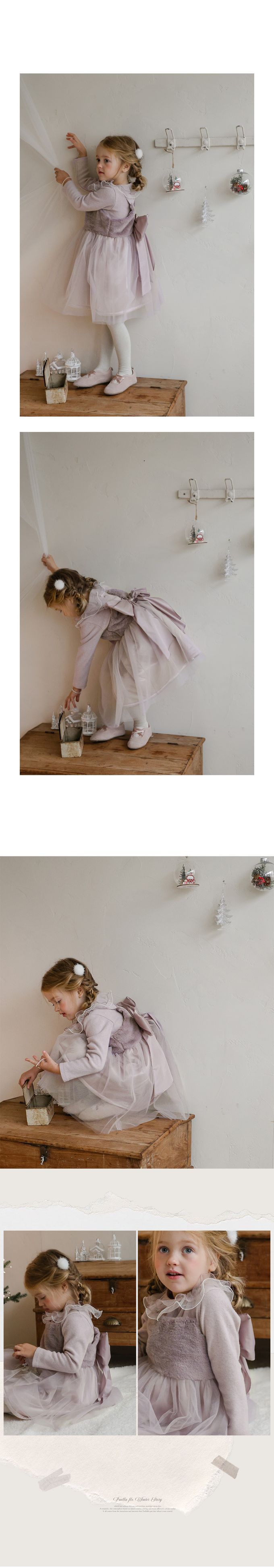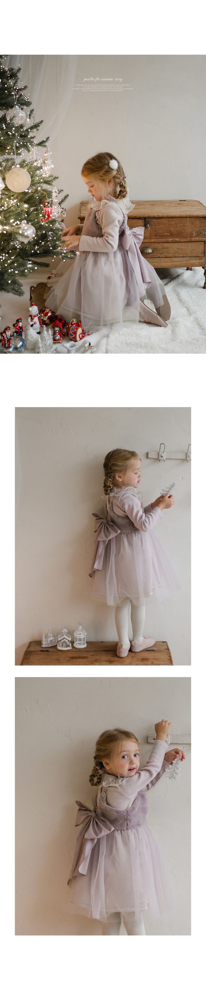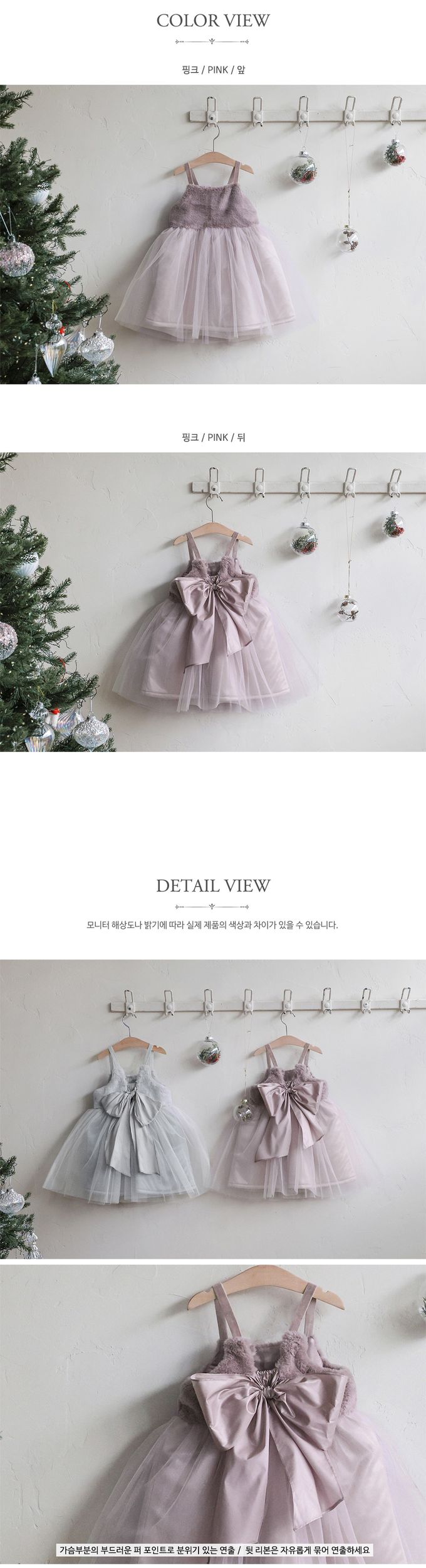 韓國南大門童裝 - Puellaflo 大蝴蝶結細肩絨毛網紗蓬蓬禮服洋裝-藕粉