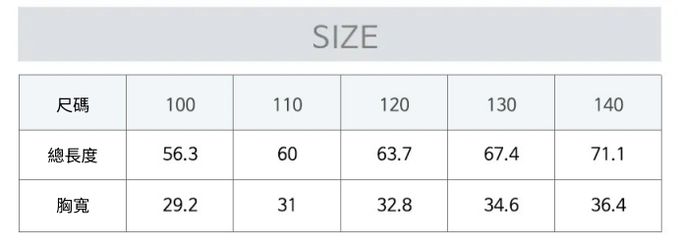 1. 尺寸表單位皆為公分(cm),實際尺寸會因布料彈性、水洗、測量起迄點等因素略有誤差。