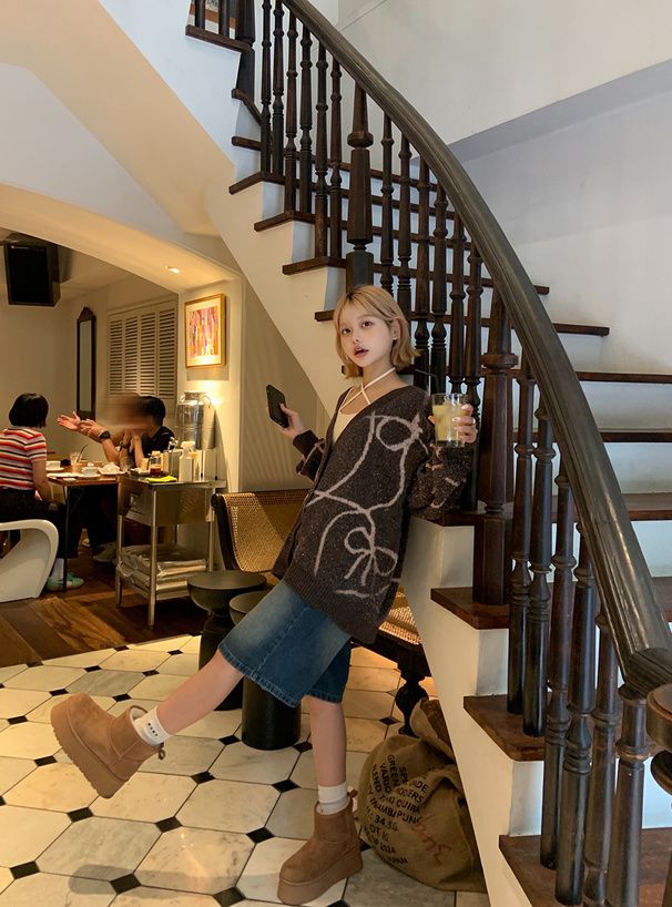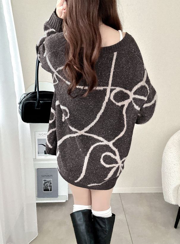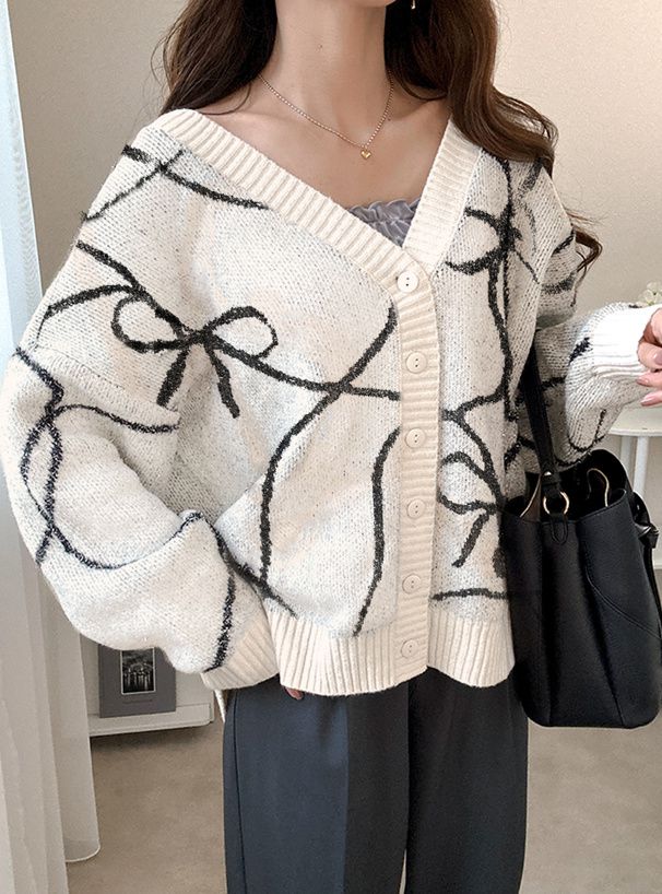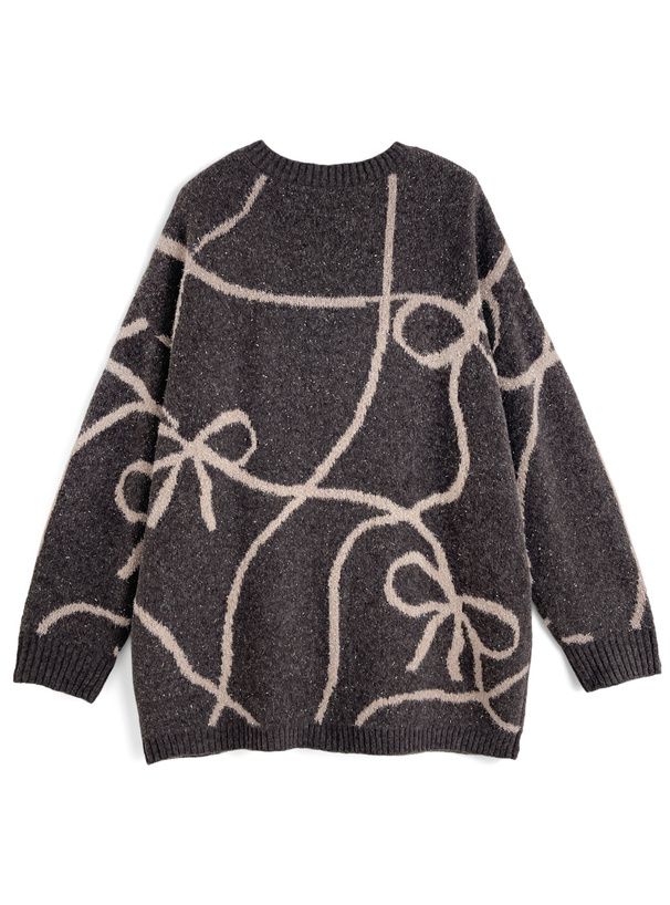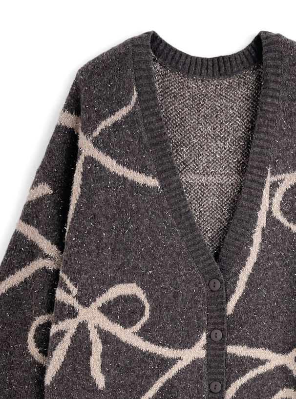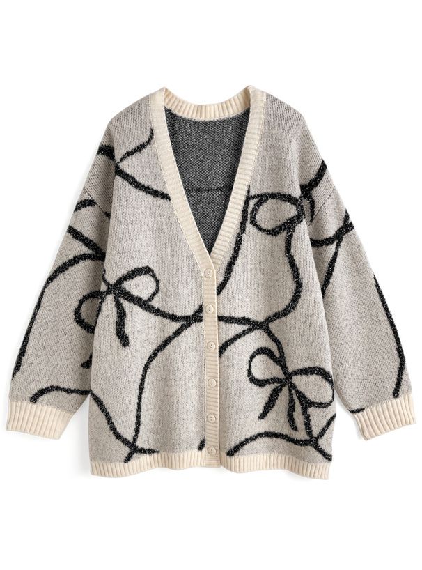 • 品名:蝴蝶結線條金蔥閃爍針織開襟衫