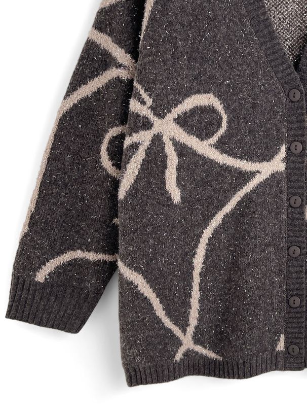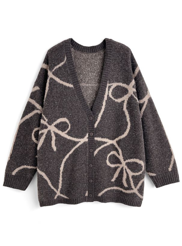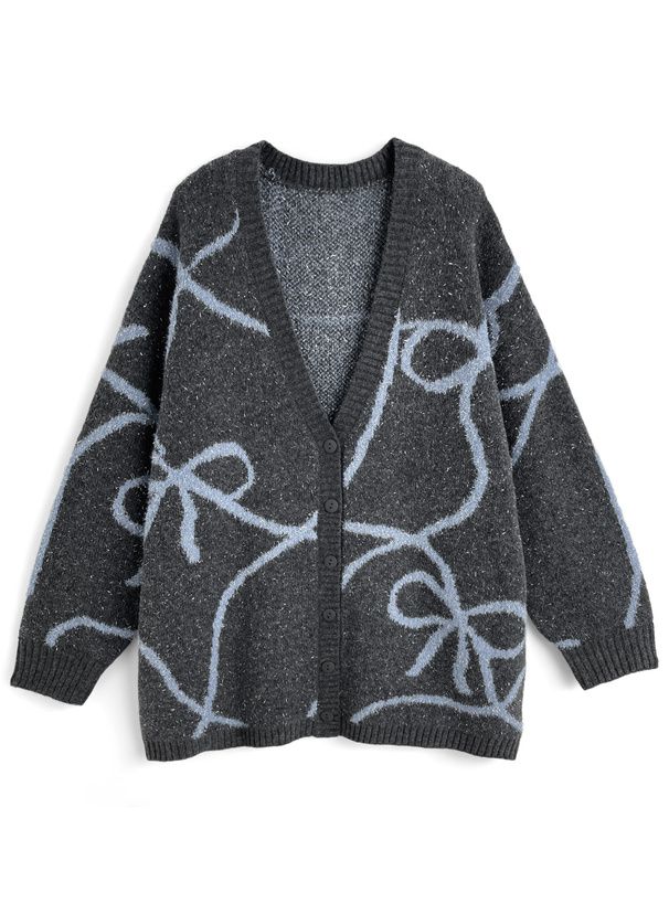 日本 GRL - 蝴蝶結線條金蔥閃爍針織開襟衫-深灰 (F)